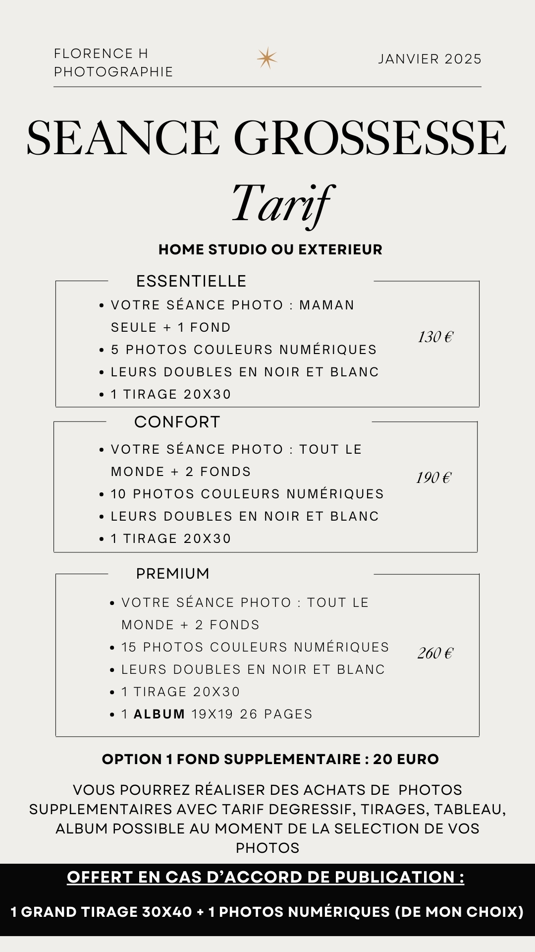 Il est possible de prendre une séance grossesse + naissance, ce qui vous donne droit à une réduction sur la séance naissance !!